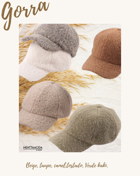 Tejido efecto bouclé · Forro suave · Visera rígida
